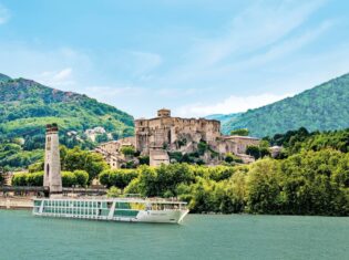 As we sail down the gently twisting Rhône River into Tournon, you’ll be treated to an extraordinary view of a 16th-century castle overlooking the village and a pair of ancient watchtowers adorning the surrounding rural landscape.